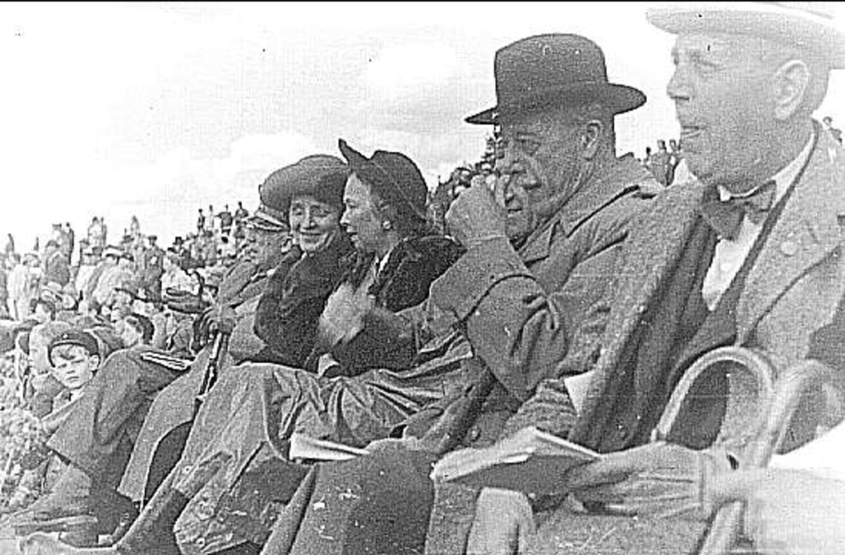 Vid prishoppningsbanan K 3 i slutet av 40-talet. Från höger i bild: G A Klingspor, okänd, okänd, Greta Bergenstråhle, Folke Högberg.