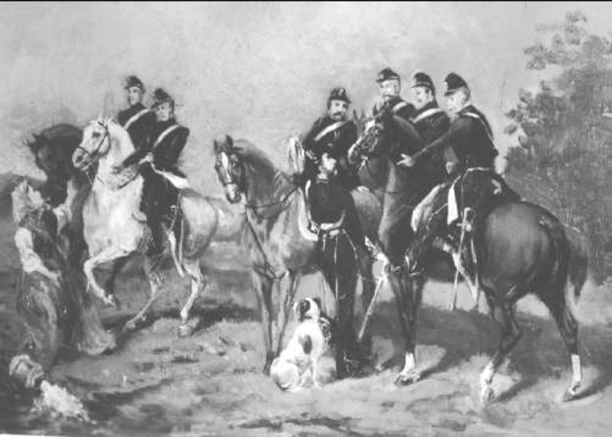 Officerare vid Livreg. Husarer. Från vänster: Ingemar Holst, Ahnström, Granath, Palmstierna, C G Wrangel, von Essen, Löwen.