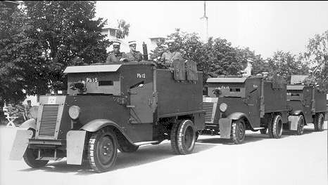 Pansarbilförsök under kav insp G Gyllenstiernas ledning. I främsta bilen längst till höger, Sven von Essen, skvadronchef för pansarbilskvadronen.