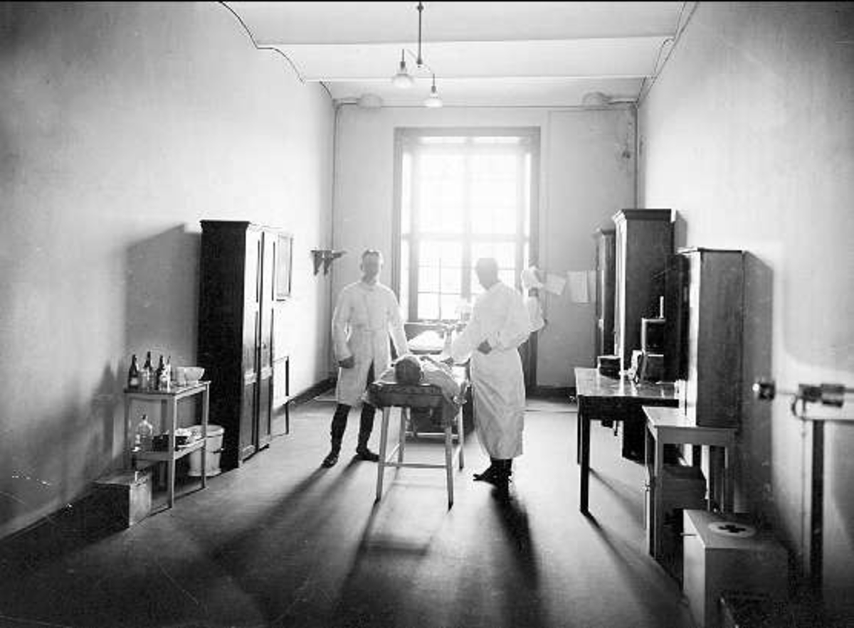 Mottagningsrummet på sjukavdelningen på K 3 i Skövde 1906.
