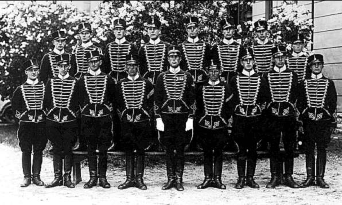 Korpralskolan vid 4.skv år 1936. Skolchef löjtn W Swedenborg. Under tiden 1905 - 1941 ansvarade varje skvadron för sin rekrytering av stammanskap och organiserade årligen en skola för volontärrekryter och en för korpralselever. Furirsutbildningen bedrevs i en för regementet gemensam skola.