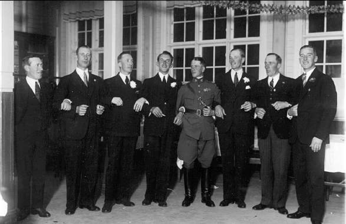 Mässfest hos underofficerskåren. R. Seipel 2 från höger, mångårig skvadronsadjutant på livskv, K 3 och G. Lund, 3 från höger, mångårig skvadronsadjutant på 2. skvadron, sedemera kasernofficer och väbel.