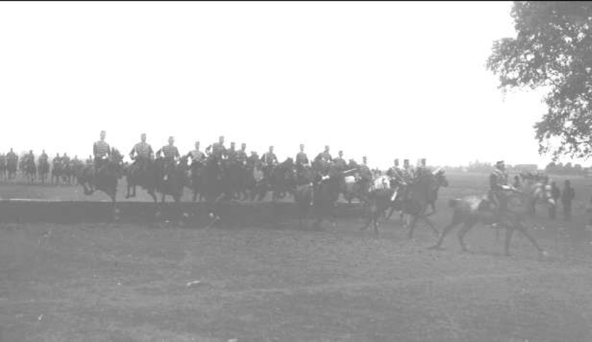 Skvadronen hinderhoppning framför husarkällan.