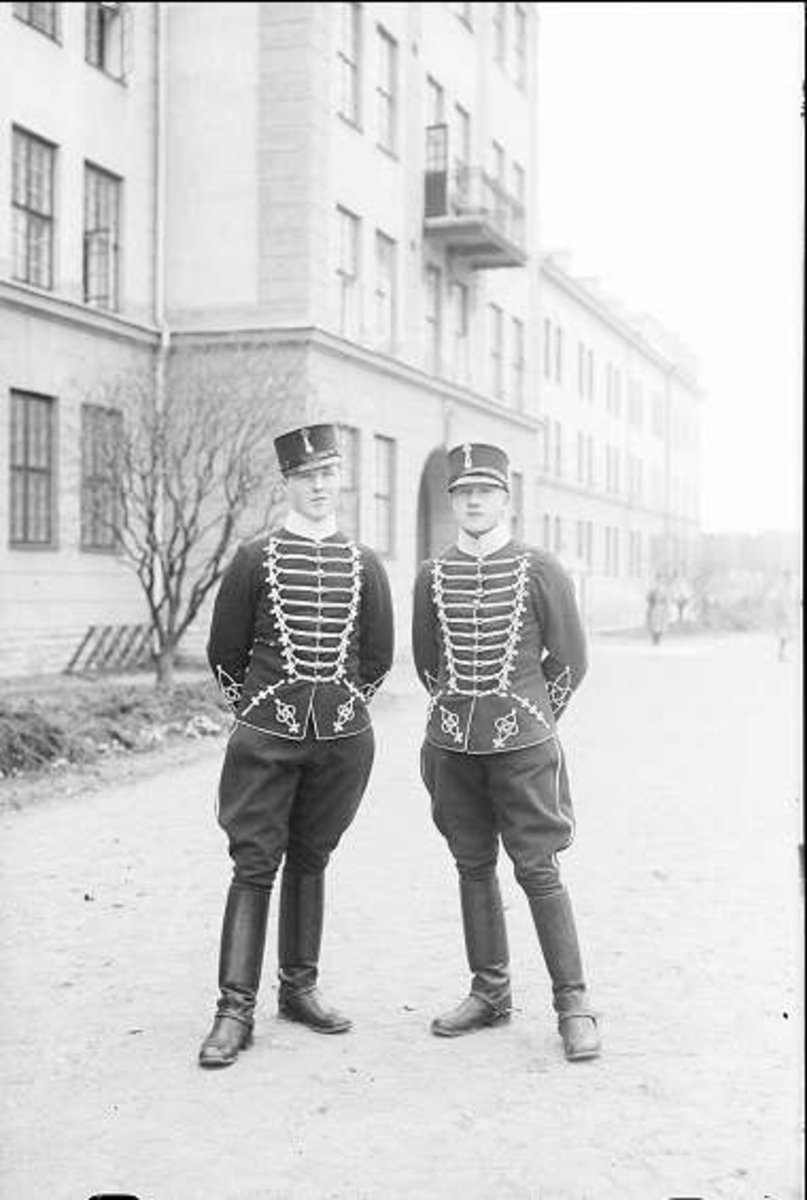 Livhusarer i uniform m/1895 (m/ä) utanför valvet