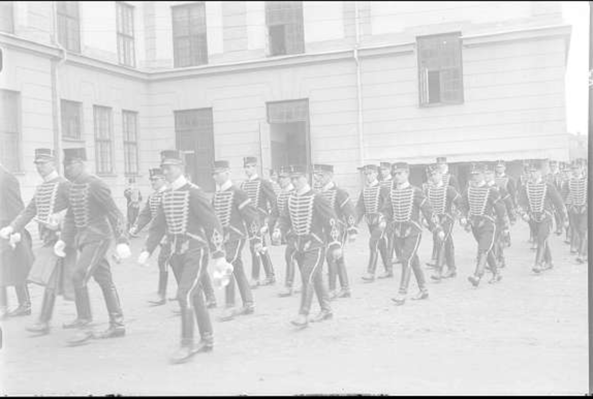 Inryckning efter korum och krigsmans erinran i exercishuset (Lundasalen).