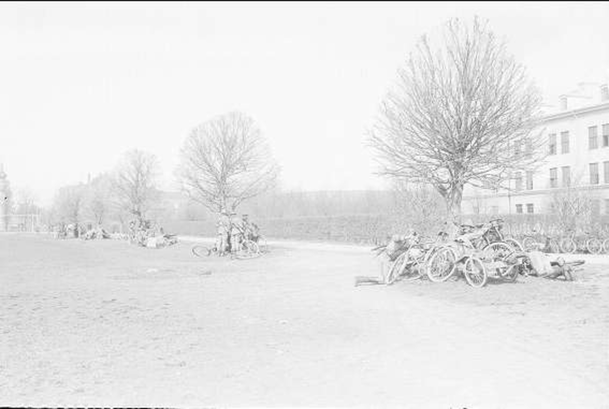 Försök med cykeltrupp. Tunga cykelgrupper med släpkärror för tung materiel.