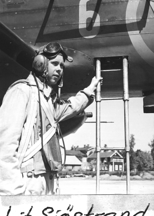 F6 Karlsborg 1950. Löjtnant Sjöstrand. Albumet är en del av en donation från Karl-Axel Hansson, Karlsborg. Förteckning över hela donationen finns i albumet samt som Word-dokument.