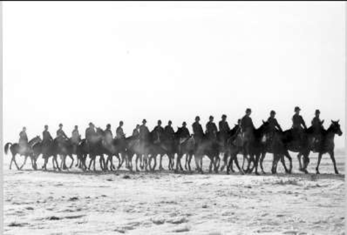 Titel: Uppställning på kaserngården före avlämning till sekundchefen.