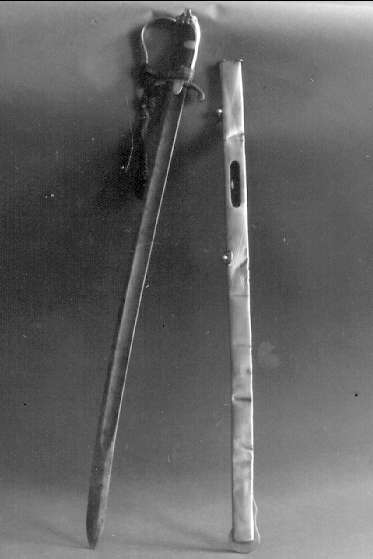 Sekundchef överste Löwens sabel, inskription på klingan ena sidan: hurra, hurra, hurra, hurra! Andra sidan: marsch! Marsch!