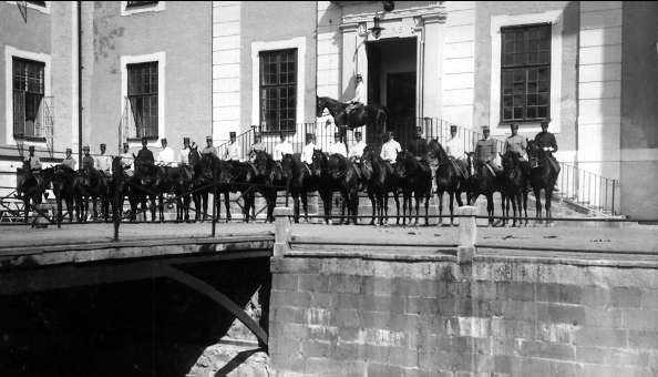 Kursen framför slottstrappan, en "stor staty" på trappans övre del. Strömsholm 1910-11.