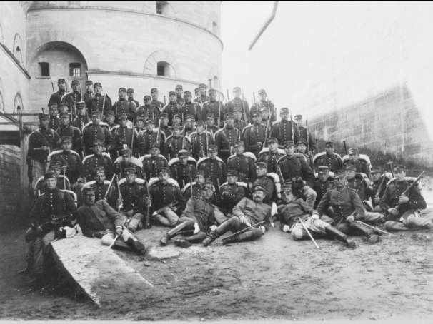 Ing komp utanför västra tornet år 1895, major Sandelin. Förstoring 33 x 45 cm. Neg finns.