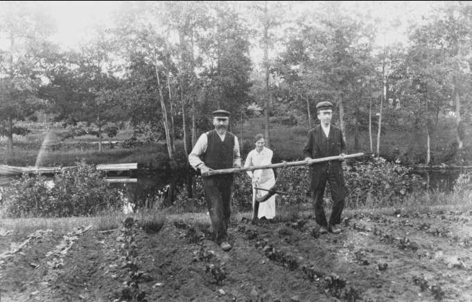 Granvik Hyttehamn, jorbruksarbete, potatisen kupas. Endast neg finns.