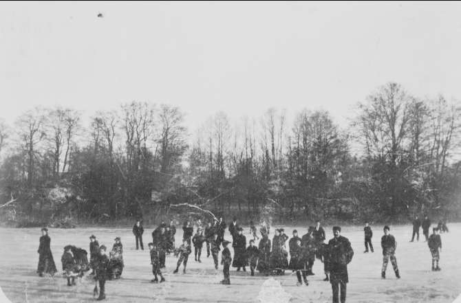 Skridskoåkning på Vikabotten Forsvik. Förstoring 25 x 42 cm. Neg finns.
