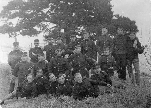 Rekryter på Karlsborgs fästning. Gruppbild med bl.a. Karl Verner Gustafsson.