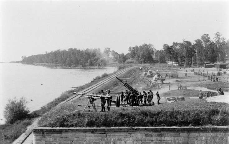 Titel: Artilleriet, skjutning från skjutplatsen vid Vätterstranden. Järnvägsspår syns vid sjökanten.