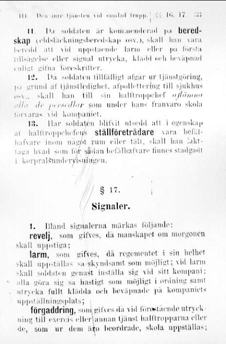 Avfotograferade förhållningsregler för armén. Signaler m.m.
