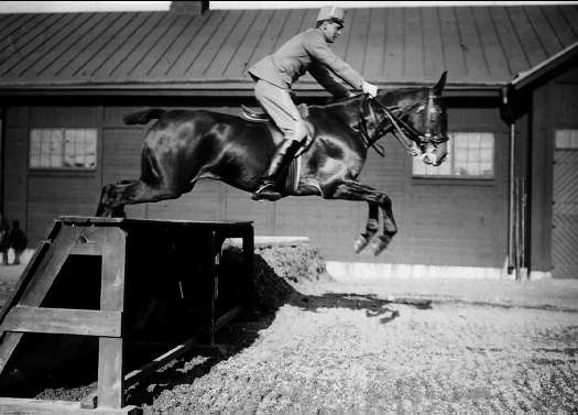 Träningshoppning på stallplan framför officersstallet. Strömsholm 1910-11.