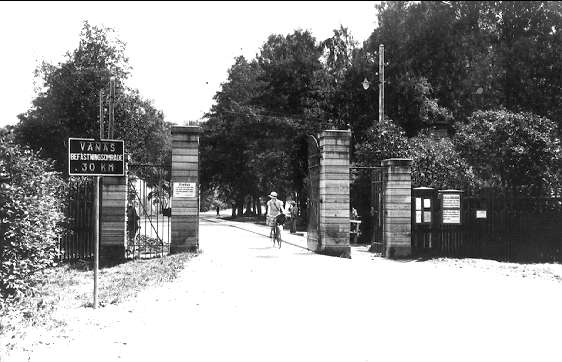 Fästningen. Huvudinfart till befästningsområdet Vanäs. Gränsen mellan det civila och militära Karlsborg.
