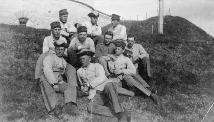 Kungliga Göta ingenjörkår år 1924. Längst upp till vänster Helge Andersson (modellbåtbyggaren) Mariestad. Förstoring 28 x 40 cm. Neg finns.