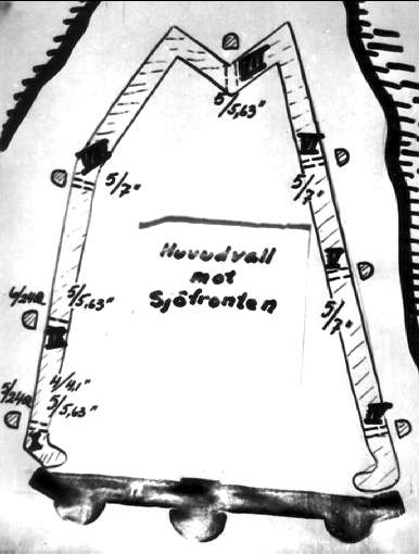Fästningen. Bestyckningsskisser, huvudvall mot sjöfronten.