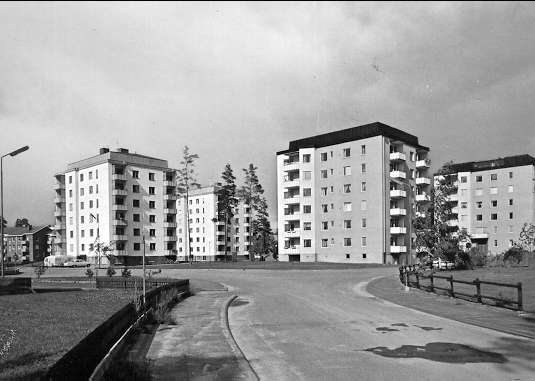 Karlsborg, höghusen i Södra Skogen, byggdes från år 1956 fram till omkr 1960. Vykort.