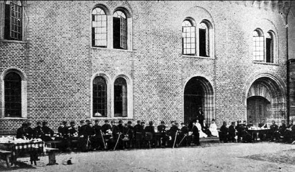 Fästningen. Officerare vid eftermiddagskaffet utanför officersmässen (slutvärnet) på Karlsborg 1870-talet.