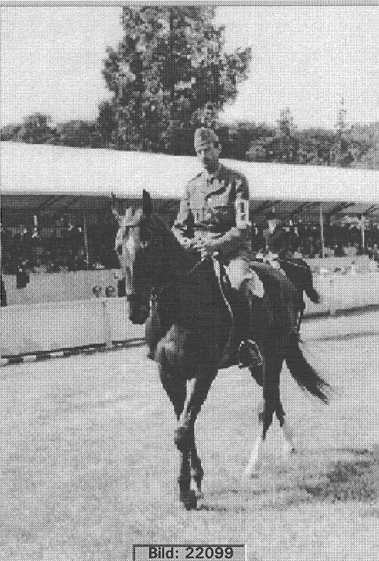Foto från blädderblocket om K3, livhusarernas tävlingsryttare. EM 2 - 5 sept 1959 i England i parken till Harewood house några mil från Harrogate, "dressyrprovet skall snart börja".