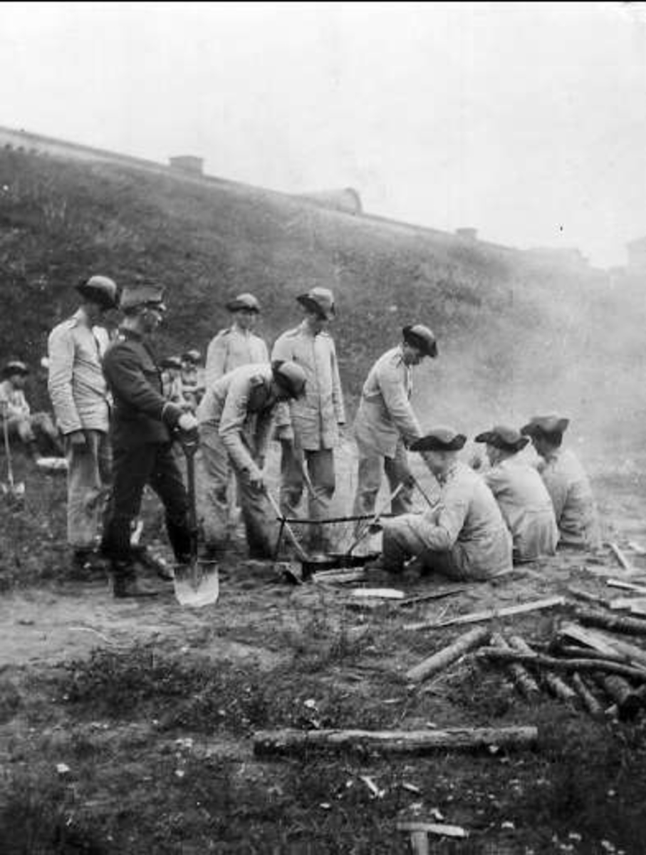 Soldater ur Göta ingenjörkår 1913-14. Kokning bakom slutvärnet.