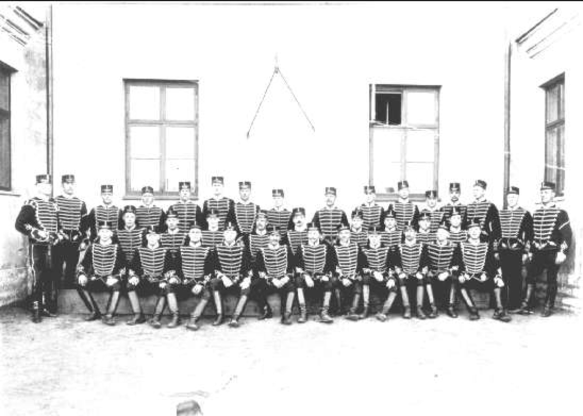 Avd. Livhusarer (ant. korpralskola) utanför kasernen i Skövde. (Bryggeriet Nordstjärnans lokaler).