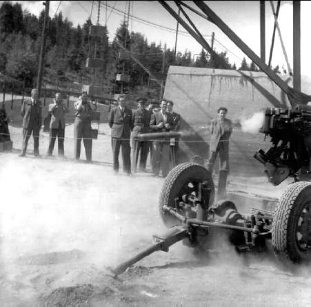 Luftvärnet. Förevisning, skjutförsök 7,5 cm m/36 på Hammarnäset.