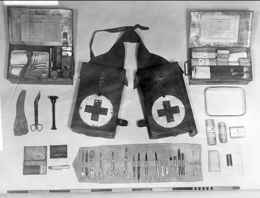 Trängen. Sjukvårdsväska, sanitetspackfickor m/1887 - 1905.