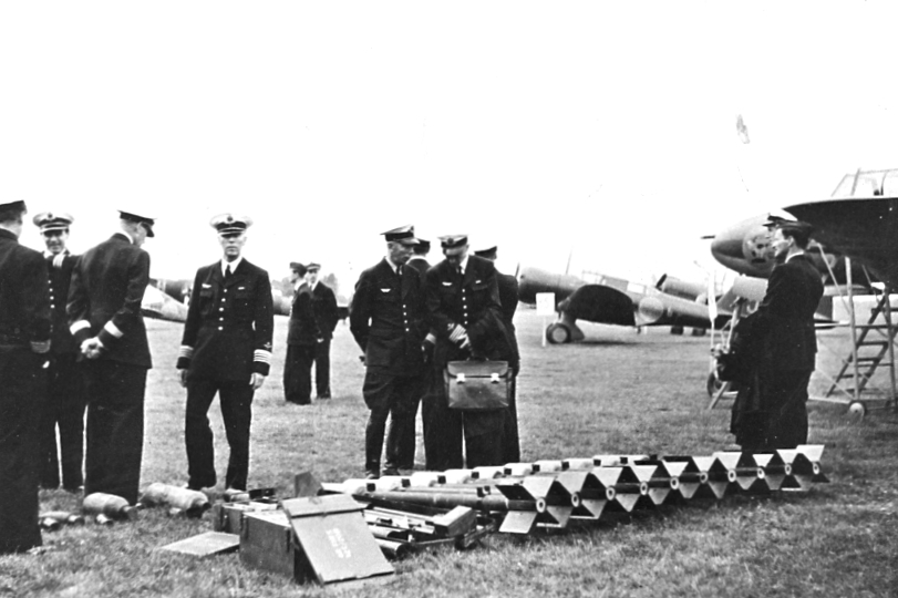 F6 Karlsborg 1946. Förevisning av raketer-engelsk typ. Albumet är en del av en donation från Karl-Axel Hansson, Karlsborg. Förteckning över hela donationen finns i albumet samt som Word-dokument.