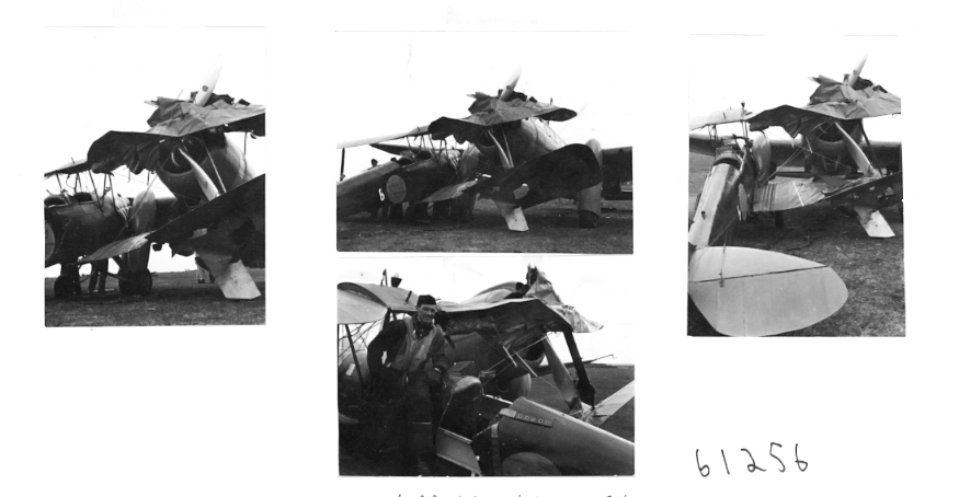 F6 Karlsborg 1944. Flygförare kadetten värnpliktige furir Arp, kolliderar med sin B17 med SK11 599, varvid denna totalförstördes. Föraren i skolplanet, värnpliktige flygförare Hedén, klarade sig oskadd. Nedersta bilden: Hedén vid SK11:an. Albumet är en del av en donation från Karl-Axel Hansson, Karlsborg. Förteckning över hela donationen finns i albumet samt som Word-dokument.