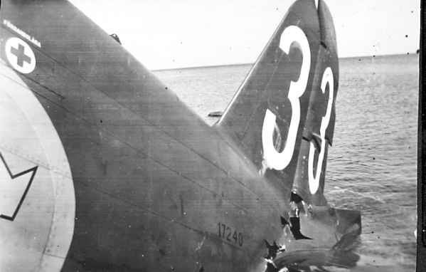 F6 Karlsborg 1944. Nödlandning med B17 reg.nr. 7240 flottiljnummer 33 i Vättern. Orsak: Motorstopp vid förberedelse för landning, varvid flygföraren hinner fälla in landningsstället och nödlanda i Vättern. Flygsignalisten, som av nervositet spänt loss sej fullständigt, undkom med mindre blessyrer i ansiktet och en lindrigt stukad underarm. Dessa skador erhöll han då han kastades mot bakre sittplatsens främre del. (Flygföraren klarade sej oskadd.) Ca 20 minuter efter landningen, överfördes besättningen till en räddningsbåt. Flygplanet flöt i 45 minuter. Bärgades senare iland vid Gräshult på stenig botten. Albumet är en del av en donation från Karl-Axel Hansson, Karlsborg. Förteckning över hela donationen finns i albumet samt som Word-dokument.