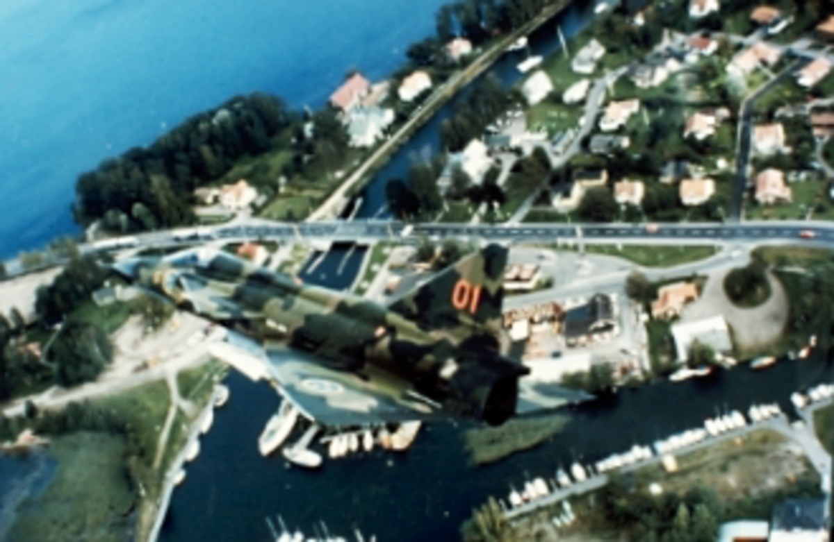 Flygfoto av Göta-kanaldelen och Strömmen i Karlsborg.