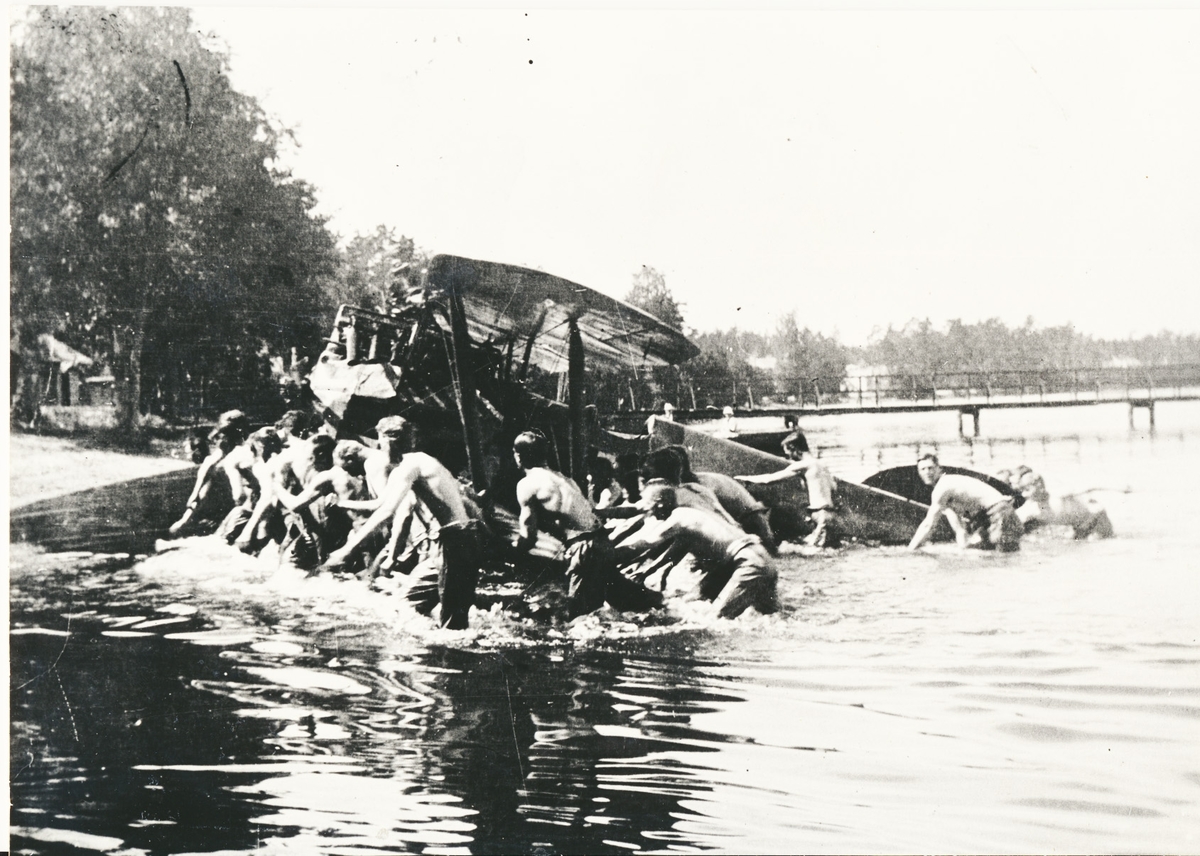Flyget i Karlsborg före F6.En Phönix-jagare nödlandar i Karlsborgsviken pga motorstörning 1922. Förare löjtnant Nernst.