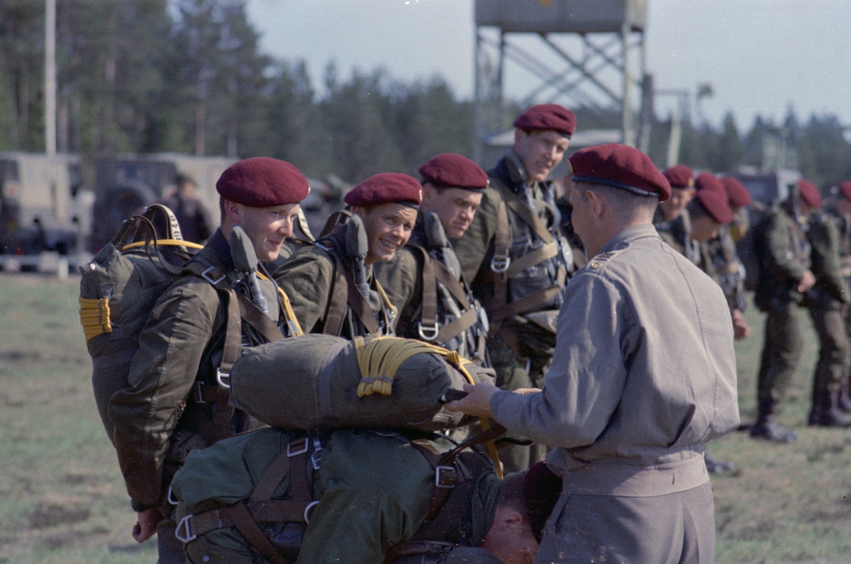 Titel: Fallskärmsjägarskolan i Karlsborg 1966.FJS-dagen.Flugebyn norr om Karlsborg.