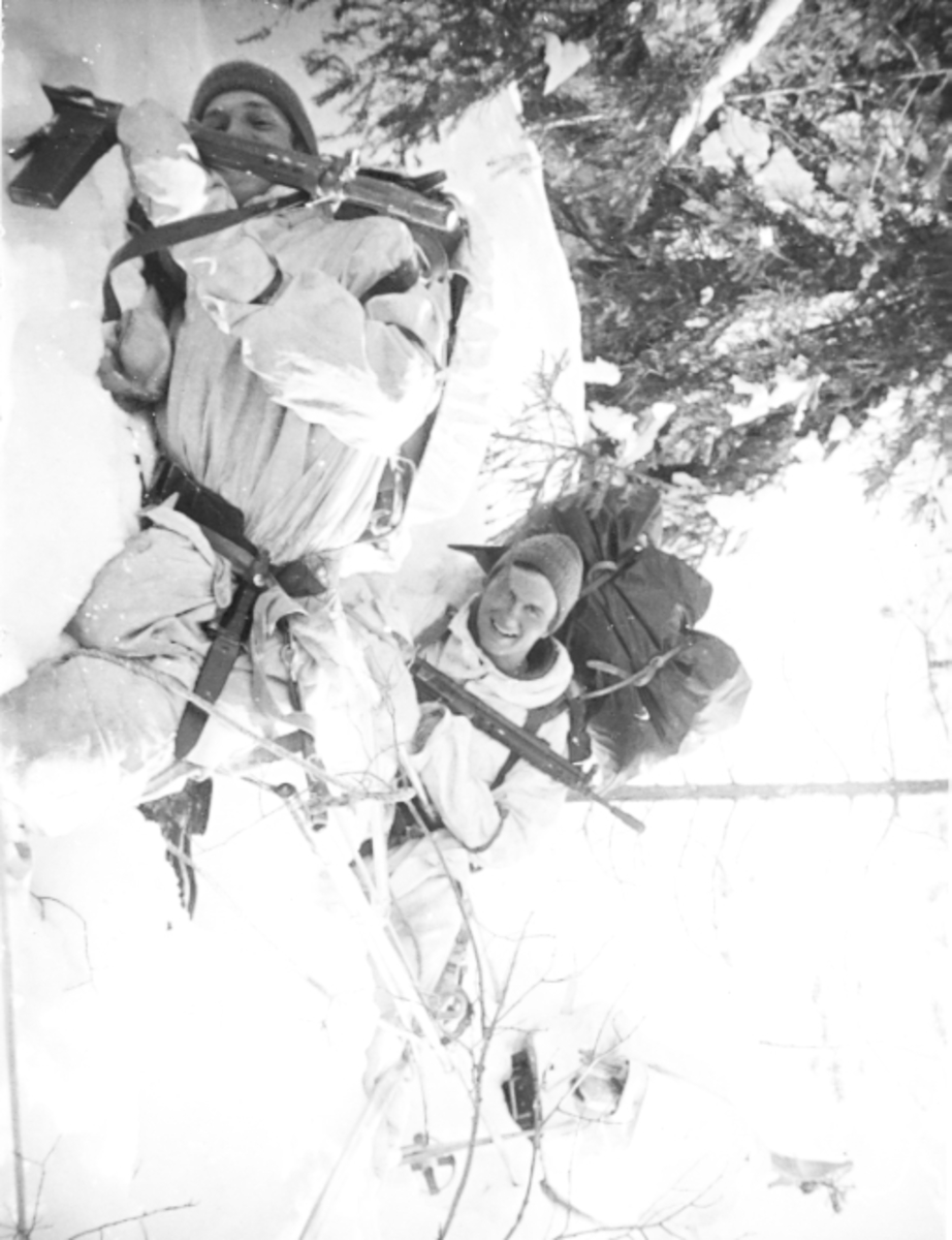 Fallskärmsjägarskolan Karlsborg slutet av 1950-tal. Vinterövning.
