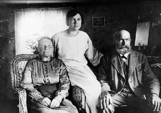 Carl och Kristina Lundgren med dottern Karin, Grytåsen. Lundgren tillhörde Mölltorps missionsförsamlings första styrelse.
