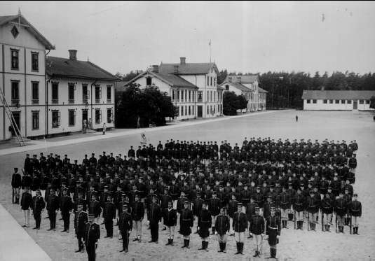 Infanterivolontärskolan Karlsborg, senare rekrytskolan för infanteriets off- och res. off. Aspiranter 1878 - 1927. Början på 1900-talet.