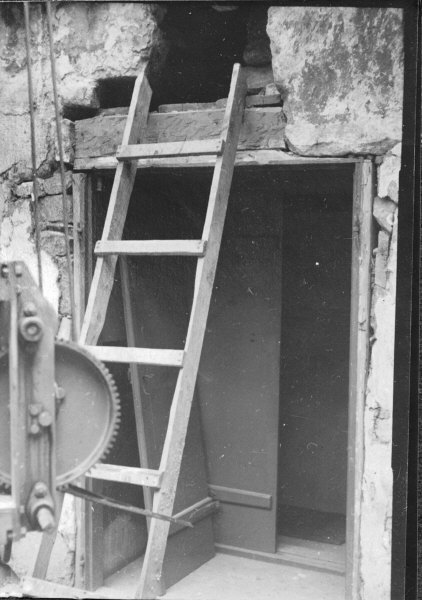 Hål ovanför dörren till läktaren, på västgaveln. Se ovanstående förstoring.