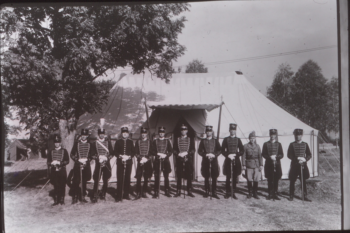Livregementets husarer. F.d.Husarlägret på Sanna hed 1947. fr. v. Gustav Malmström, Måns K. Alexandersson, Stig Settergren (vetrinär) , Rickard Montgomery-Cederhielm, Gösta Bergenstråle (sekondchef), Folke Linton, Magnus Bruzelius, (Regementsintendent), Magnus Fornell, Börje Wallberg, Olle Westman.