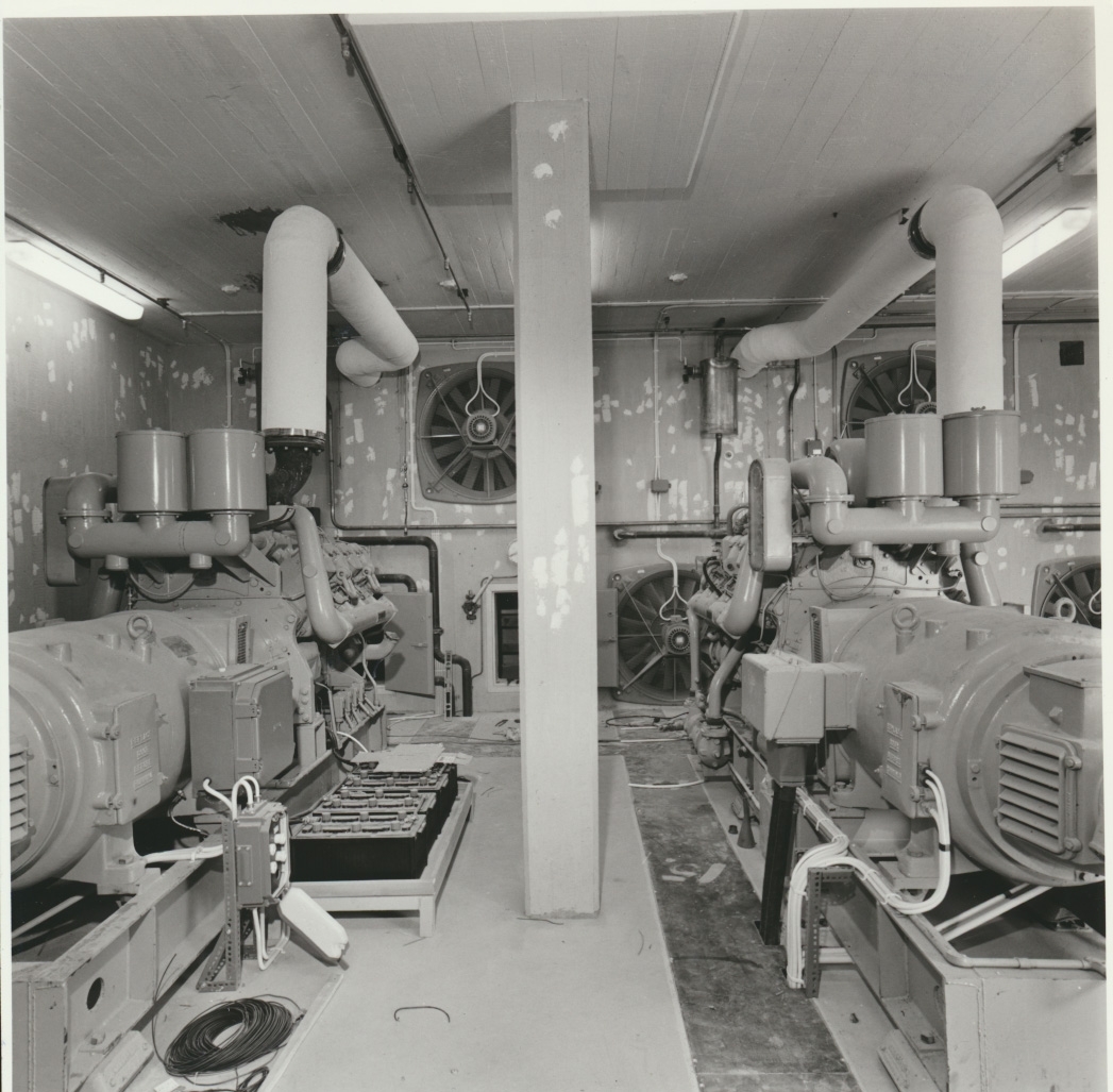 Kråks radiostation Karlsborg 1964. 2 diseldrivna reservelverk, Dorman, på vardera 350 KVA.