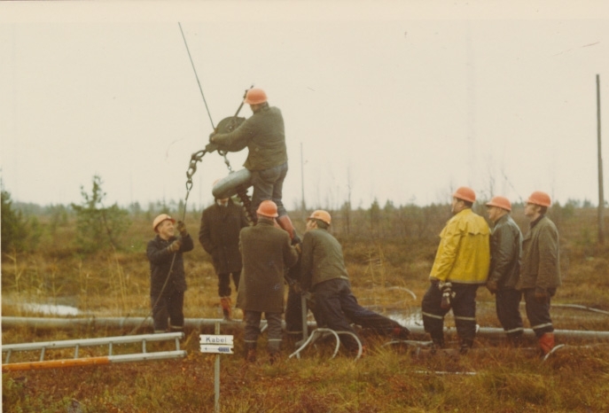 Kråks radiostation Karlsborg 1964. Arbete pågår för upphissning av långvågsantenn.