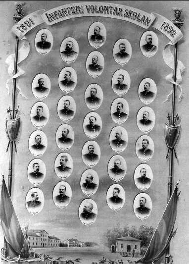 Infanterivolontärskolan Karlsborg, senare rekrytskolan för infanteriets off- och res. off. Aspiranter, 1878 - 1927. Volontärskolan 1891 - 1892.