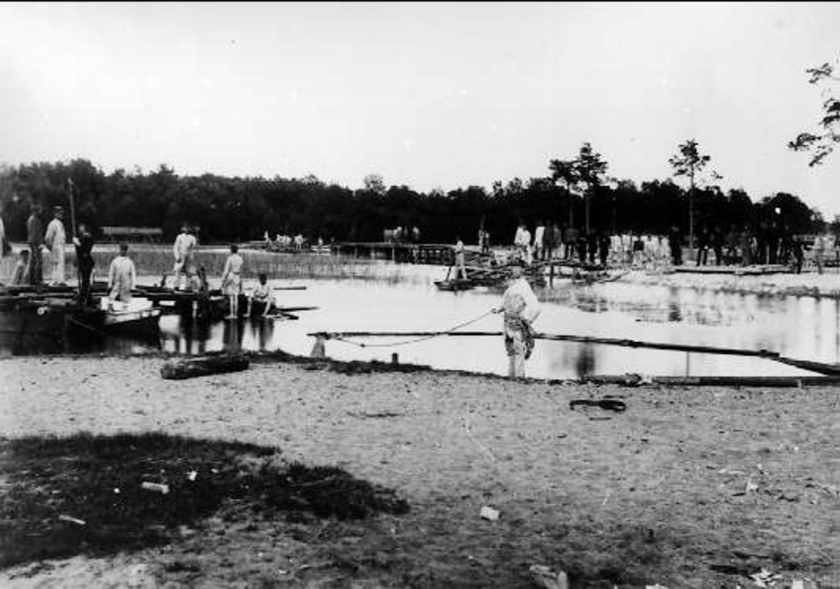 Ing 2, brobyggnad vid Gullspång omkring 1900..Objektkommentar: Med hänsyn till omgivningen är bilden troligen inte tagen i Gullspång utan i Karlsborgs omedelbara närhet.