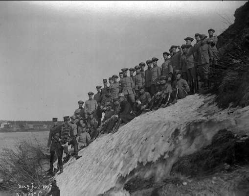 "Ön" den 9 juni 1907 vid +20 grader C. Skolbefälet uniform m/ä, eleverna uniform m/10.