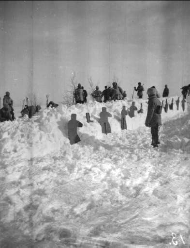 Skarpskjutning på Kvarken mot uppkastad snövall.