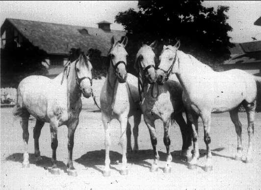Fyra stycken vita hästar - "vinterhästar". Major Sven Littorins stora förtjusning - skvadronschefernas fasa.