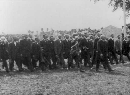 Titel: Kamratföreningarnas förbimarsch för prins Eugen vid minnesstenen.